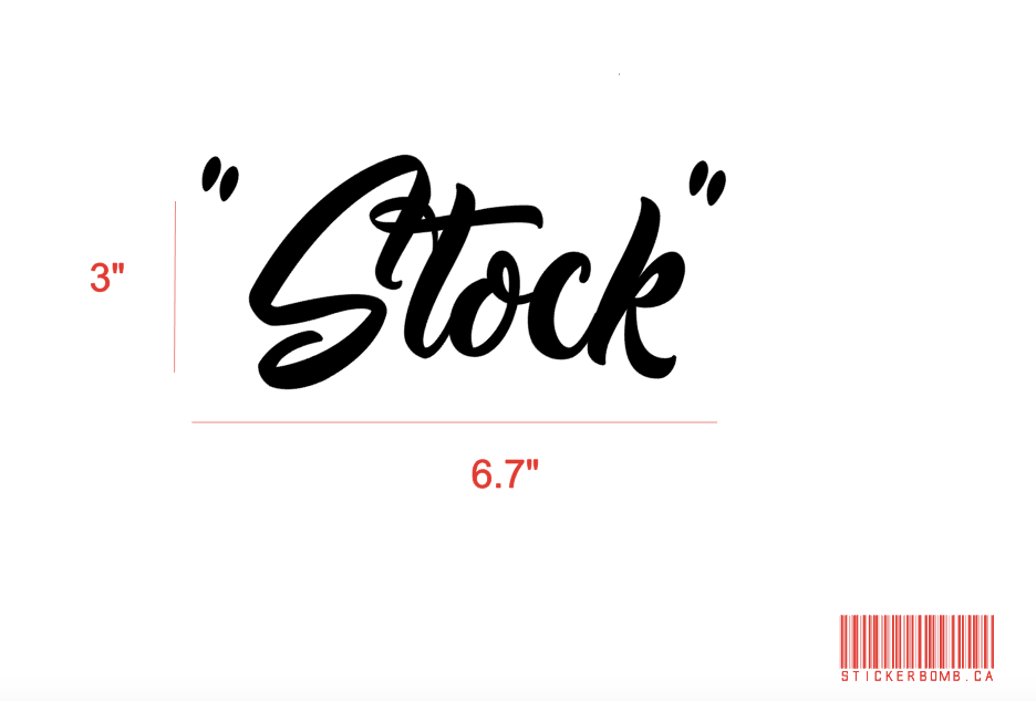 "Stock" decal available in a variety of colours. These decals are made from high quality vinyl that is suitable for both outdoor and indoor applications. These decals will have no problem holding up against any kind of weather, car washes etc.